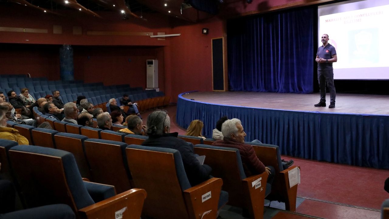 İzmir Büyükşehir Belediyesi İzmir İtfaiyesi Eğitim Sorumlusu Mesut Topal, olası afetlere karşı her zaman hazırlıklı olmanın önemini yaşanan son deprem felaketinde gördüklerini ifade ederek, “Yaşananlardan büyük dersler çıkarmalıyız. Mahalle Afet Gönüllüleri Projesi’ni bu yüzden çok önemsiyoruz. Son depremde 7 bine yakın insanı komşuları çıkardı. Çünkü afetin ilk anlarında trafik, insan akını vb. durumlar oluyor. Bu yüzden o mahalleyi, toplanma alanlarını bilen insanlar çok önem taşıyor. Ciddi afetlerde sokaklar tanınmaz hale geliyor. Profesyonel destek ekiplerine bilgi verecek, o çevreyi tanıyan insanların afet bölgesinde bulunması gerekiyor” dedi. Olası deprem anlarında koridor, merdiven boşluğu gibi alanlara gidilmemesi gerektiğini dile getiren Topal, “Buralarda sizi koruyucu hiçbir şey yok. Kanepe, koltuk gibi eşyaların yanında vücudunuzu küçültün. Bölge dışından biriyle iletişim kurmaya çalışın. Çocukların enkazdan daha çok sağ çıkmasının sebebi yaşam alanlarının daha küçük olması” diye konuştu.