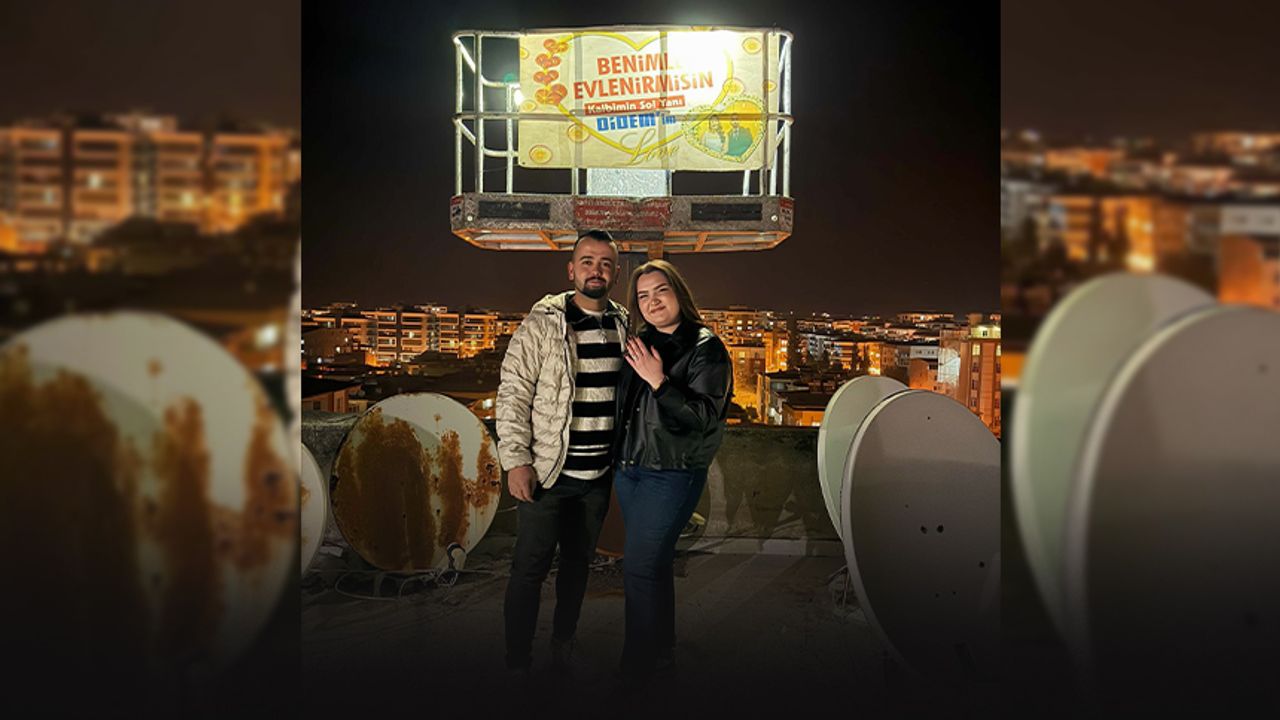 Nazilli'de sıhhi tesisat işiyle uğraşan Abdi Yangöz, kiraladığı vincin sepetine çıkarak apartmanın çatı katına yükseldi ve yıllardır planladığını belirttiği sürprizi gerçeğe dönüştürdü. Vinç sepetine asılan pankartta, 'Benimle evlenir misin, kalbimin sol yanı Didem?' yazısı yer aldı. Romantik anlara Yangöz'ün arkadaşları da meşalelerle eşlik ederek görsel bir şölen sundu. Sürpriz evlilik teklifine gelin adayı Didem'den 'Evet' yanıtı geldi. Mutlu çift, teklifin kabul edilmesinin ardından vincin sepetiyle birlikte aşağıya indi.(DHA)