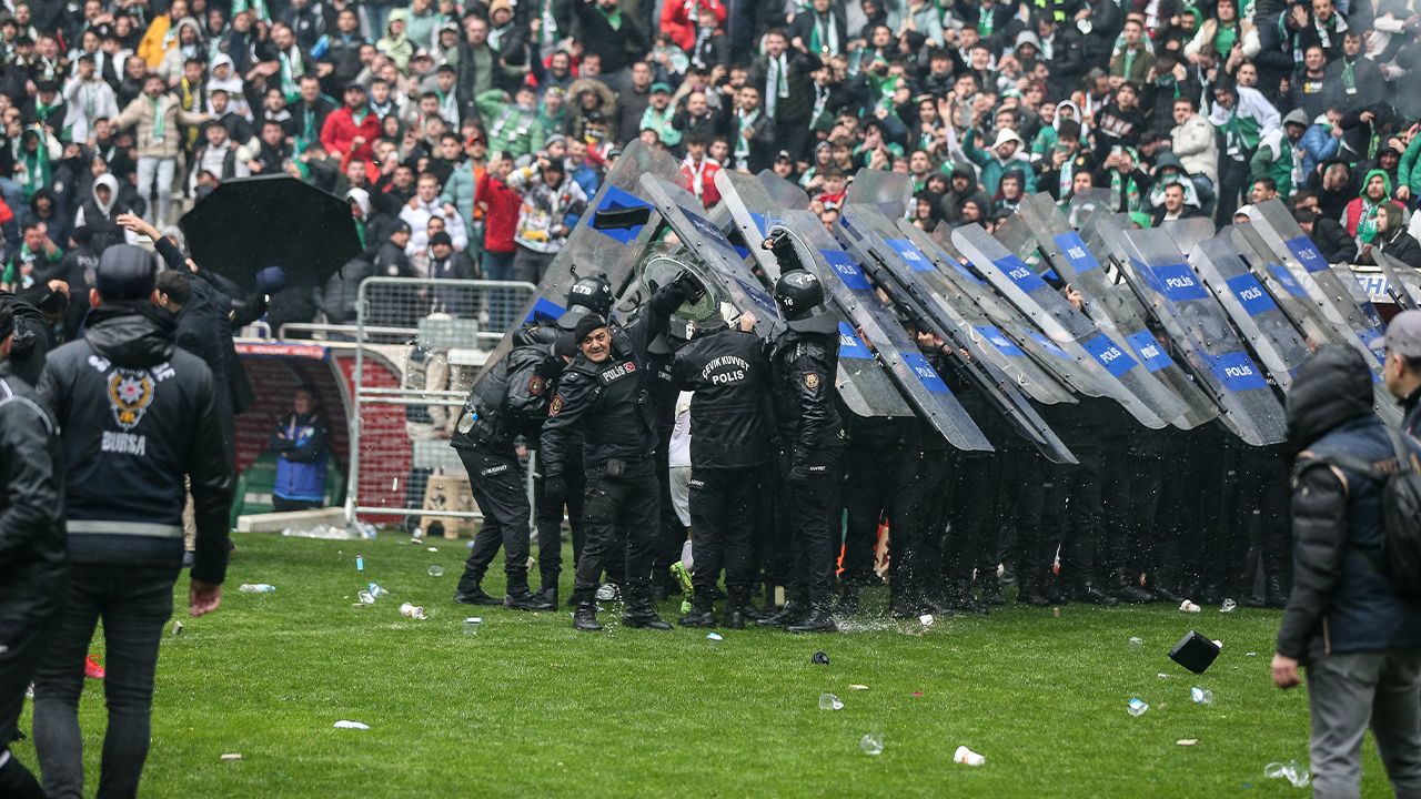 Bursa Büyükşehir Belediye Stadyumu'nda oynanan Bursaspor-Amedspor maçında, sahada çıkan olaylar ve tribünlerde açılan pankartlar, tepkilere neden oldu.