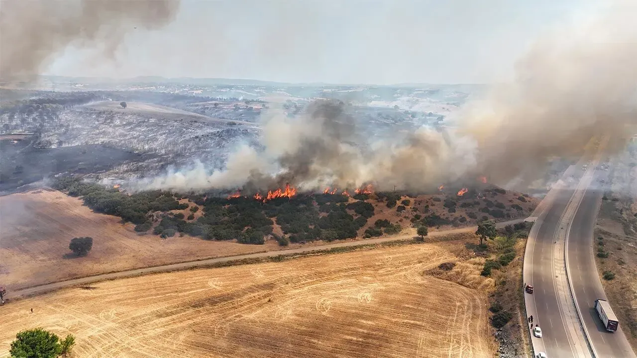 İzmir- Manisa yoluna kadar ilerleyen alevlerin önüne havadan ve karadan yapılan yoğun çalışmalar sonucu yangının geçildi. Alevlere 4 uçak, 8 helikopter, 24 arazöz, 6 su ikmal aracı, 5 dozer ve 42 yer ekibiyle müdahale edildi. Havanın kararmasıyla birlikte sadece karadan müdahale devam ederken, yangın dron ile havadan da görüntülendi. (DHA)