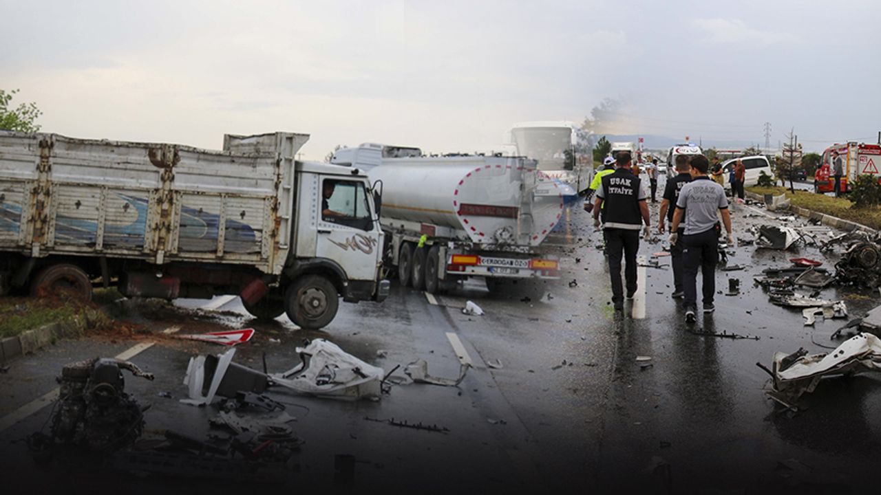Kontrolden çıkan araç daha sonra K.İ. (51) idaresindeki 42 DKM 81 plakalı yem ham maddesi yüklü tankerle çarpıştı. Hafif ticari araçtaki Tolga Bulut (24) ile amcası Osman Bulut (38), çarpışmanın etkisiyle yola savruldu.