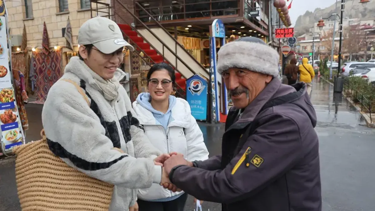 Cemalettin Yavuz ile sohbet eden Çinli turist River Jeremy, "9 dil bilen birisi ile karşılaşmak bizi mutlu etti" dedi.