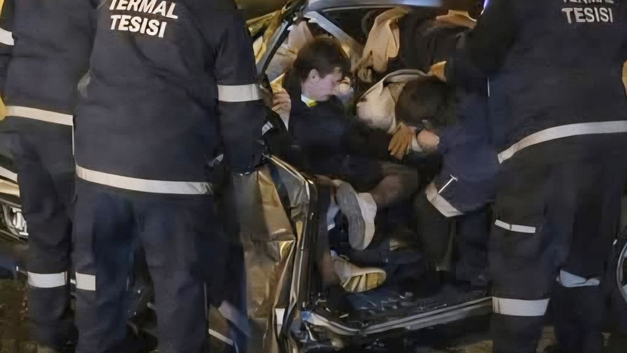 Kaza, Afyonkarahisar- Konya Karayolu'nun Bolvadin Termal Tesisleri giriş kavşağında saat 22.30 sıralarında meydana geldi. Kazayı gören termal tesis görevlileri, jandarma ve sağlık ekiplerine ihbarda bulundu. Otomobilde bulunan 5 kişiden üçünün otomobilde sıkıştığını gören Termal tesis görevlileri, sağlık ekipleri olay yerine gelene kadar otomobilde sıkışan yaralıları otomobilden çıkarttı. Yaralılar, olay yerine gelen sağlık ekiplerinin ilk müdahelesinin ardından, Afyonkarahisar'daki hastanelere sevk edildi.