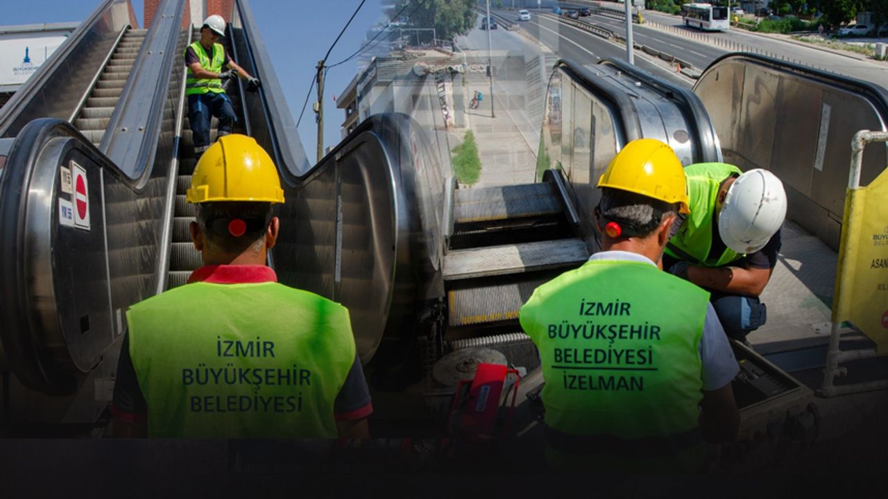 Kent genelinde 123 asansör ve 127 yürüyen merdivenin bakım ve onarımı 32 teknik personel ile yürütülüyor. Kentin kuzey ve güneyinde ayrı ekipler görevlendiriliyor. Söz konusu ünitelerin gerek rutin bakımları gerekse arızalara müdahale ve yedek parça değişimleri etkin bir şekilde yapılıyor. İzmir Büyükşehir Belediyesi Yapı İşleri Dairesi Başkanlığı Tesisler Bakım Onarım Şube Müdürlüğü bünyesinde asansör ve yürüyen merdiven şefi olarak görev yapan İlhan Özkan, “Vandalizm ve hırsızlık olayları ünitelerin faal tutulabilmesini güçleştiriyor. Ünitelerin sürekli çalışır halde tutulması için ekipler sahada etkin bir şekilde mücadele etse de özellikle yürüyen merdivenlerin acil stop düğmelerine basılarak durdurulması vatandaşların merdivenlerden faydalanmasını olumsuz etkiliyor. Gereksiz yere merdivenleri durdurma olaylarına tanık olan vatandaşlarımızın uyarıda bulunması ve ALO 153 Hemşehri İletişim Hattı’nı arayarak tarafımıza bilgi vermesi çok önemli. Asansörlerin kapılarının tekmelenmesi, butonların sökülmesi, elektrik kablolarının çalınması gibi olaylar da oluyor. Tanık olan vatandaşların İzmir Büyükşehir Belediyesi ve kolluk güçlerini arayarak zararın önlenmesi adına hareket etmesi gerekiyor” dedi.