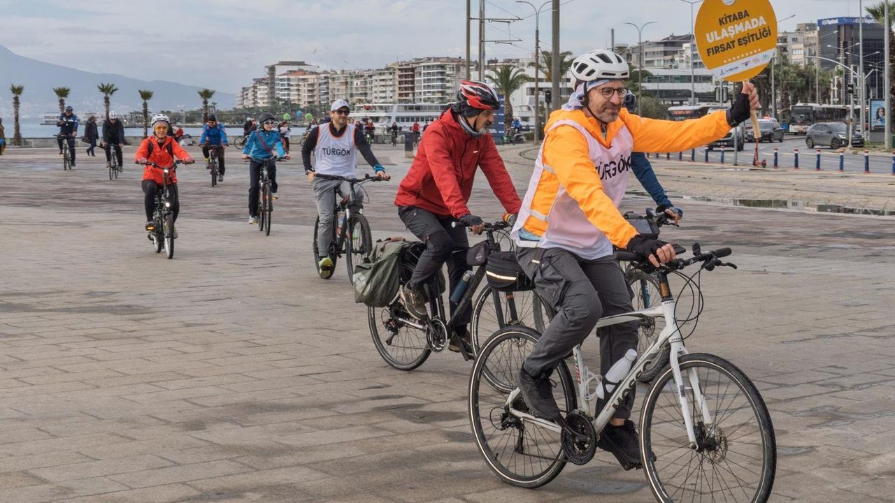 İzmir Büyükşehir Belediyesi ile Türkiye Görme Özürlüler Kitaplığı (TÜRGÖK) iş birliğinde, görme engelli bireylerin kabartma kitaplara erişimine dikkat çekmek ve toplumsal farkındalığı artırmak amacıyla Bostanlı Yasemin Kafe ile İnciraltı Engelliler Parkı arasında bisiklet sürüşü düzenlendi. Beyaz Baston Görme Engelliler Haftası kapsamında gerçekleştirilen etkinlik, “Görmeyenler Daha Çok Kabartma Kitap Okusun Diye Umuda Pedal Çeviriyoruz” sloganıyla hayata geçirildi. Etkinliğe 100’e yakın bisikletli katıldı. Katılımcılar, www.maratonizmir.org adresi üzerinden kayıt yaptırarak Bostanlı Yasemin Kafe önünden başlayıp bisiklet yollarını takip ederek İnciraltı Engelliler Parkı’na kadar farkındalık sürüşü yaptı.