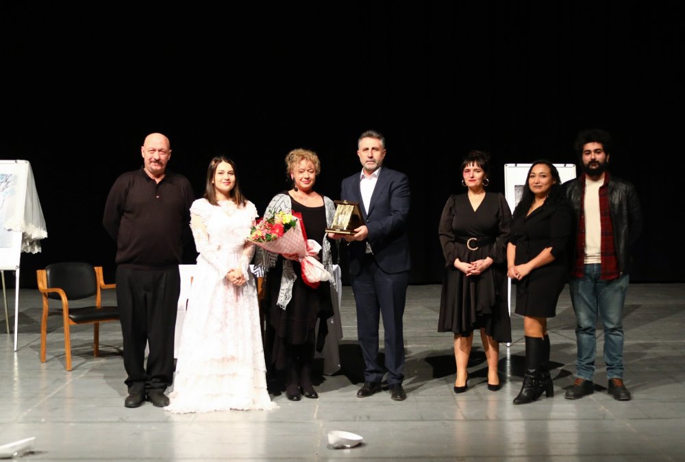 Kadına şiddetle alakalı sosyal sorumluluk projesi olarak tiyatro sahnesi için hazırlanan oyunda; psikolojik şiddet gören bir kadın, küçük yaşta tecavüze uğrayıp, töre adı altında evlendirilen bir kız çocuğu ve şiddet gören iyi eğitimli bir kadının ölümle sonuçlanan hikayeleri anlatıldı. Oyunun sonunda Başkan Sandal, oyunculara çiçek ve plaket takdim etti.