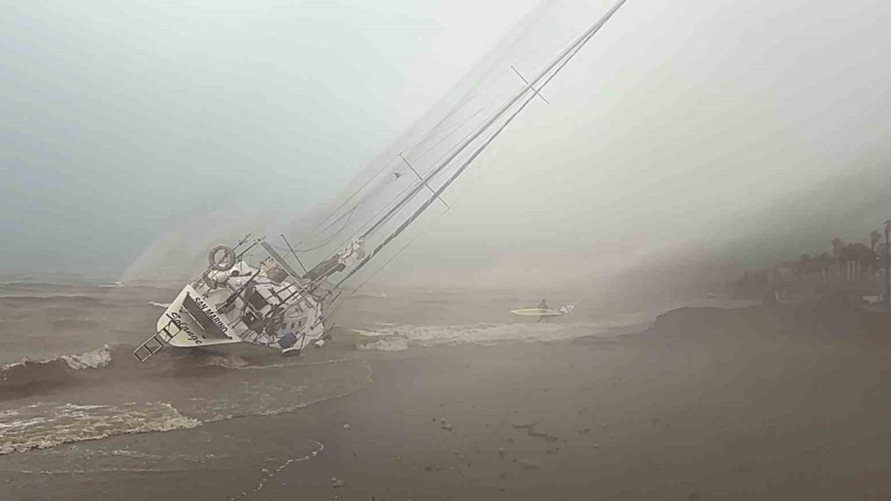 Etkisini arttırarak devam eden sağanak nedeniyle bazı bölgelerde su birikintileri oluşurken, kuvvetli rüzgar nedeniyle bağlı bulunduğu tonozdan kopan 'San Marino' ve 'Mila 5' isimli yelkenli tekneler, karaya vurdu. Teknelerde hasar oluştuğu belirtildi.