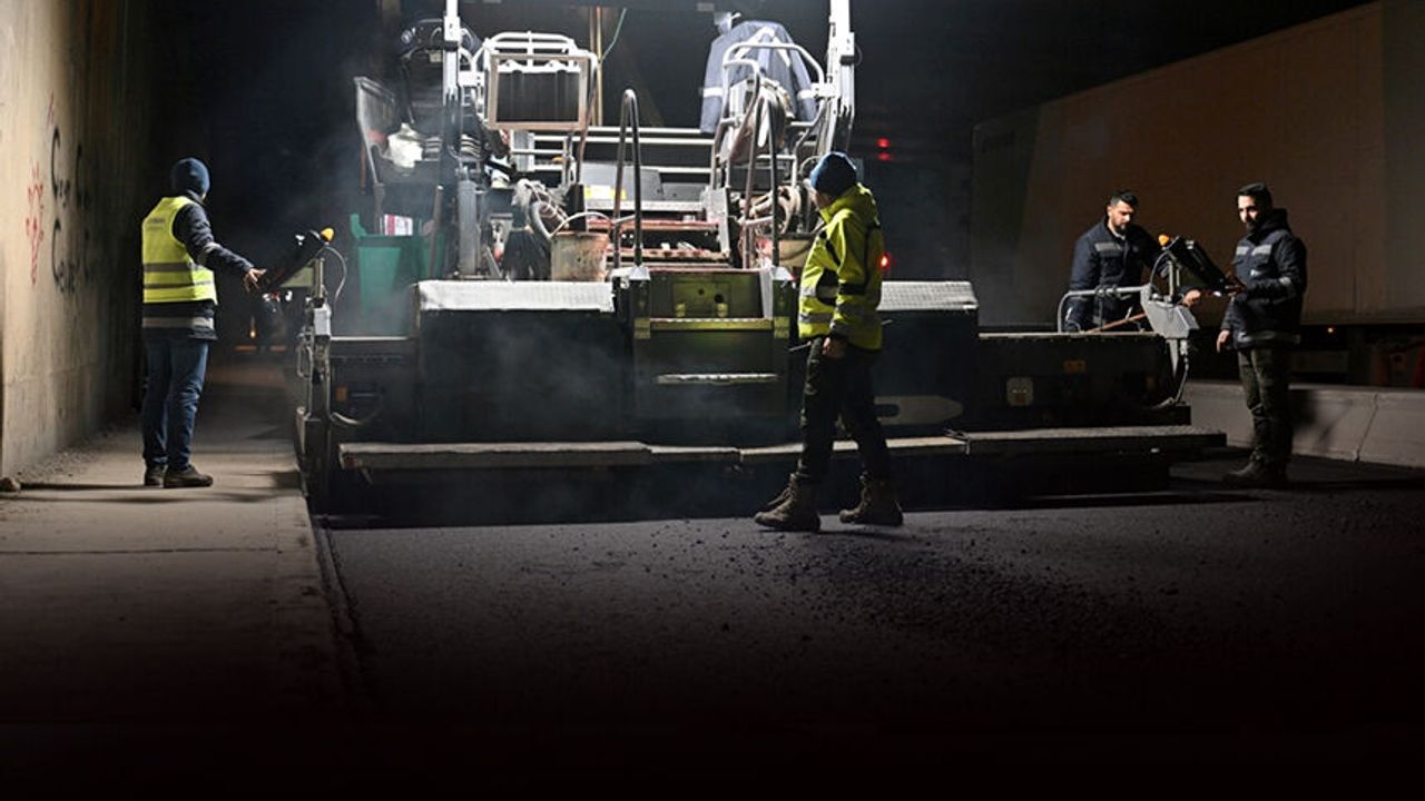 Aydınlar Caddesi’nde gece boyu asfalt mesaisi