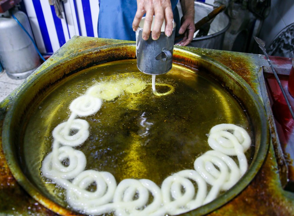 Özel hazırlanan hamurdan yapılan tatlı için sahurun ardından mesaiye başlayan üreticiler, talepleri karşılamak için iftar saatine kadar hummalı çalışma yürütüyor.
