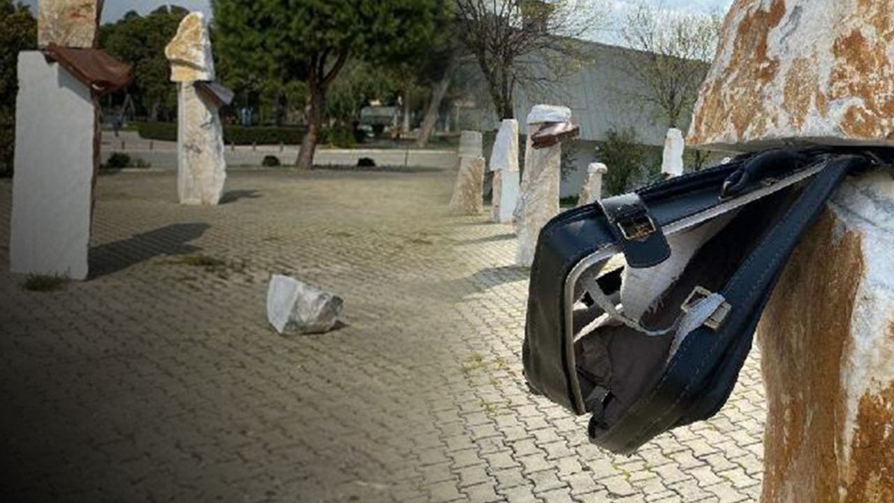 İzmir Büyükşehir Belediyesi ev sahipliğinde geçen yıl açılan sanatçı Ahmet Güneştekin'in 'Gavur Mahallesi' sergisinin açık hava bölümünde sanatseverlerle buluşan eserleri, kimliği belirsiz kişi ya da kişilerce saldırıya uğradı. Mermer blokların arasına sıkıştırılarak sergilenen valizleri almak isteyen kişi ya da kişilerce bloklardan bazıları devrildi, bazıları çalındı.