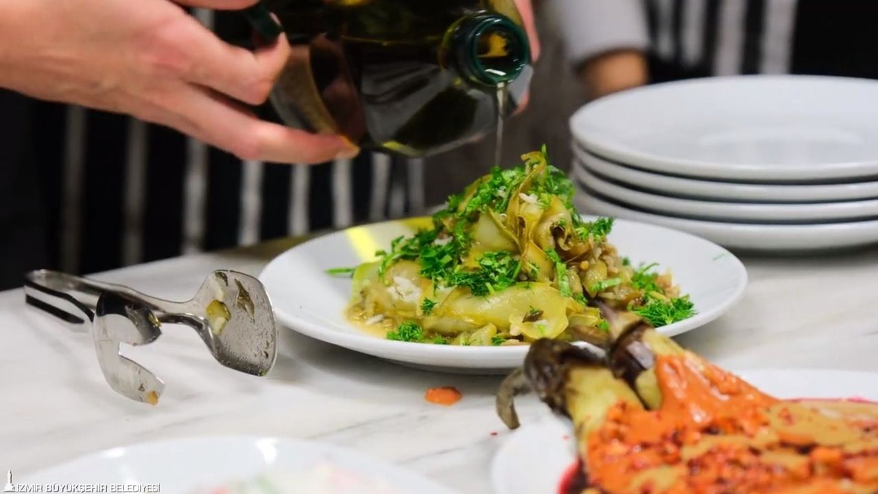 İzmir Büyükşehir Belediyesi’nin Meslek Fabrikası’nda düzenlediği sağır ve işitme engelli kursiyerlere yönelik pastacı çıraklığı kursundan mezun olan kursiyerler, İzmir Çeşme’de restoranı bulunan ve sosyal medya platformlarında birbirinden özel tariflerini paylaşan şef Rıfat Yurttaş ile buluştu. Engelli Çalışmaları Şube Müdürlüğü’nde görevli işaret dili çevirmenleri Özlem Özer ve Melek Uslular’ın çevirmenliğiyle katılımcılarla iletişim kuran Yurttaş, onlarla birlikte Ege mutfağına ait meze ve zeytinyağlı yemekler yaptı.