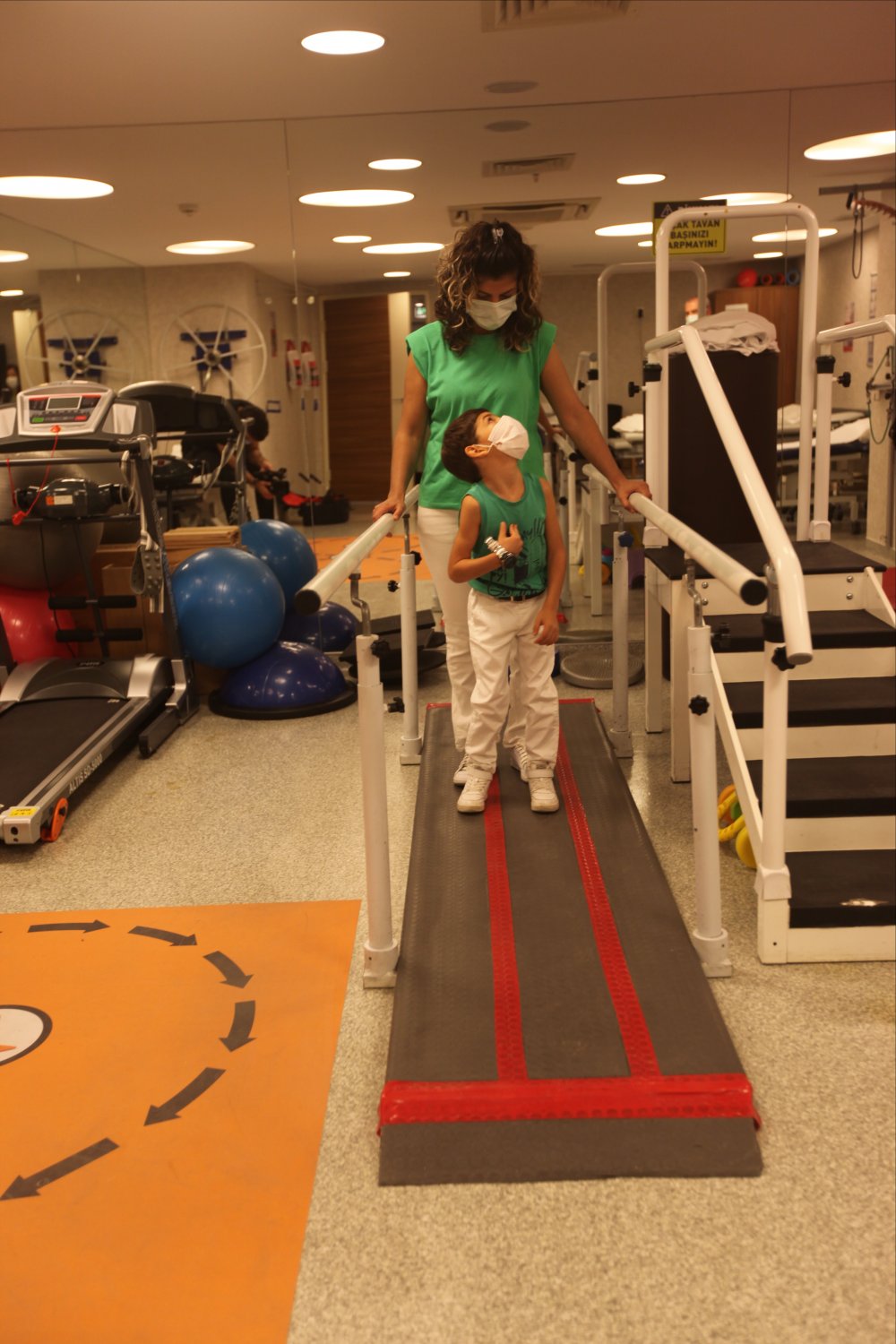 Yapılan muayenesinin ardından Fizik Tedavi ve Rehabilitasyon Bölümünde tedavisine başlanan küçük Kağan Ali, dengesini kurup adım atmaya başladı.