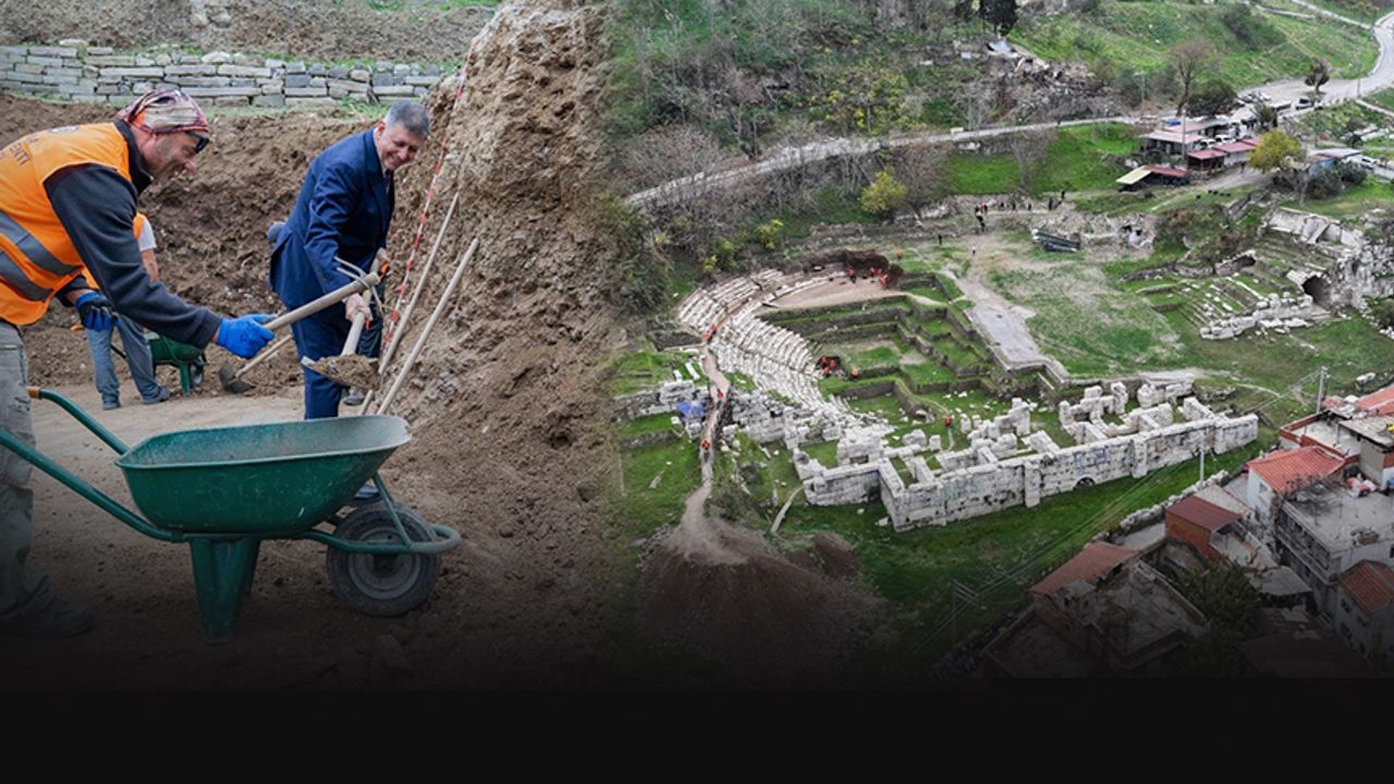 Kazıda görevli arkeologlarla buluşan ve kürekle çalışmalara katılan İzmir Büyükşehir Belediye Başkanı Dr. Cemil Tugay, “Ellerinize sağlık. Ben yeniden geleceğim. Yanınızdayız, hiç merak etmeyin” şeklinde konuştu. Başkan Tugay, bölgedeki taşıt yollarını da düzenleyeceklerini söyledi.