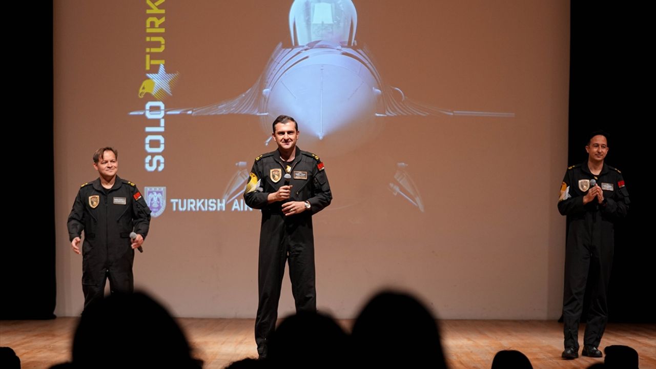 SOLOTÜRK'ten Hava Pilot binbaşılar Murat Bakıcı ve Mustafa Erhan Aydemir ile Hava Uçak Bakım Binbaşı Tuna Karalı, Ege Üniversitesi (EÜ) Prof. Dr. Yusuf Vardar MÖTBE Kültür Merkezi'nde söyleşi gerçekleştirdi.