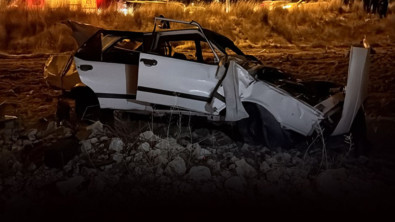 Demir yığını haline dönüşen aracın sürücüsü yaralandı. İhbar üzerine kaza yerine sağlık ve polis ekipleri sevk edildi.