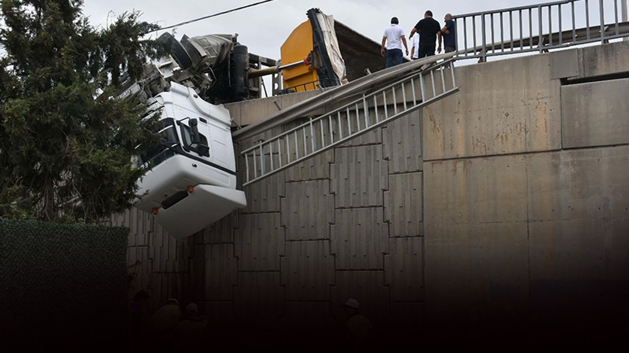 TIR'ın kupası viyadüğe asılı kalırken, şoför Öngen yaralandı.