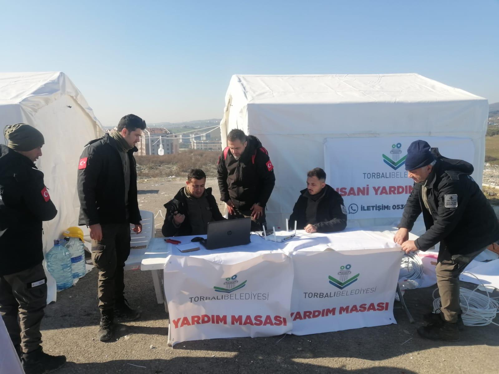 Ayrıca İzmir Büyükşehir Belediyesi ile beraber koordinasyon merkezi oluşturan Torbalı Belediyesi, Çadırkent ve 3000 kişilik aşevi kurdu. Yalnızca Torbalı Belediyesi ve İzmir Büyükşehir Belediyesi’nin yer aldığı merkezde belediye ekibi lojistik destek sağlıyor. Bölgeye 20 metrelik sıklıklarla hangarlar kuran Torbalı Belediyesi, bölgenin tüm gıda, giyim, hijyen başta olmak üzere depremzedelerin her türlü ihtiyaçlarının girişini sağlıyor. Ayrıca TDU Savunma Sistemleri A.Ş. tarafından Torbalı Belediyesi’ne teslim edilen 350 metrekarelik çadır bölgenin en önemli lojistik deposu olarak görev yapıyor. Eksiklikleri de tespit eden ekip yaraların sarılması için büyük bir özveri ile çalışarak, Hatay'ın tüm mahalle ve köylerine gıda, erzak, kıyafet, bebek bezi, mama desteğinde bulunuyor. Ayrıca Torbalı'dan gelen TIR’ları da burada karşılayan belediye ekibi, kurulan lojistik destek çadırına TIR’ları indiriyor. Ekip, Torbalı Belediyesi, Torbalı Ticaret Odası ve Torbalı Cumhuriyet Halk Partisi İlçe Başkanlığı’nın gönderdiği TIR’ları da burada teslim alarak ihtiyacı olan vatandaşlara eşit bir şekilde dağıtmaya devam ediyor.