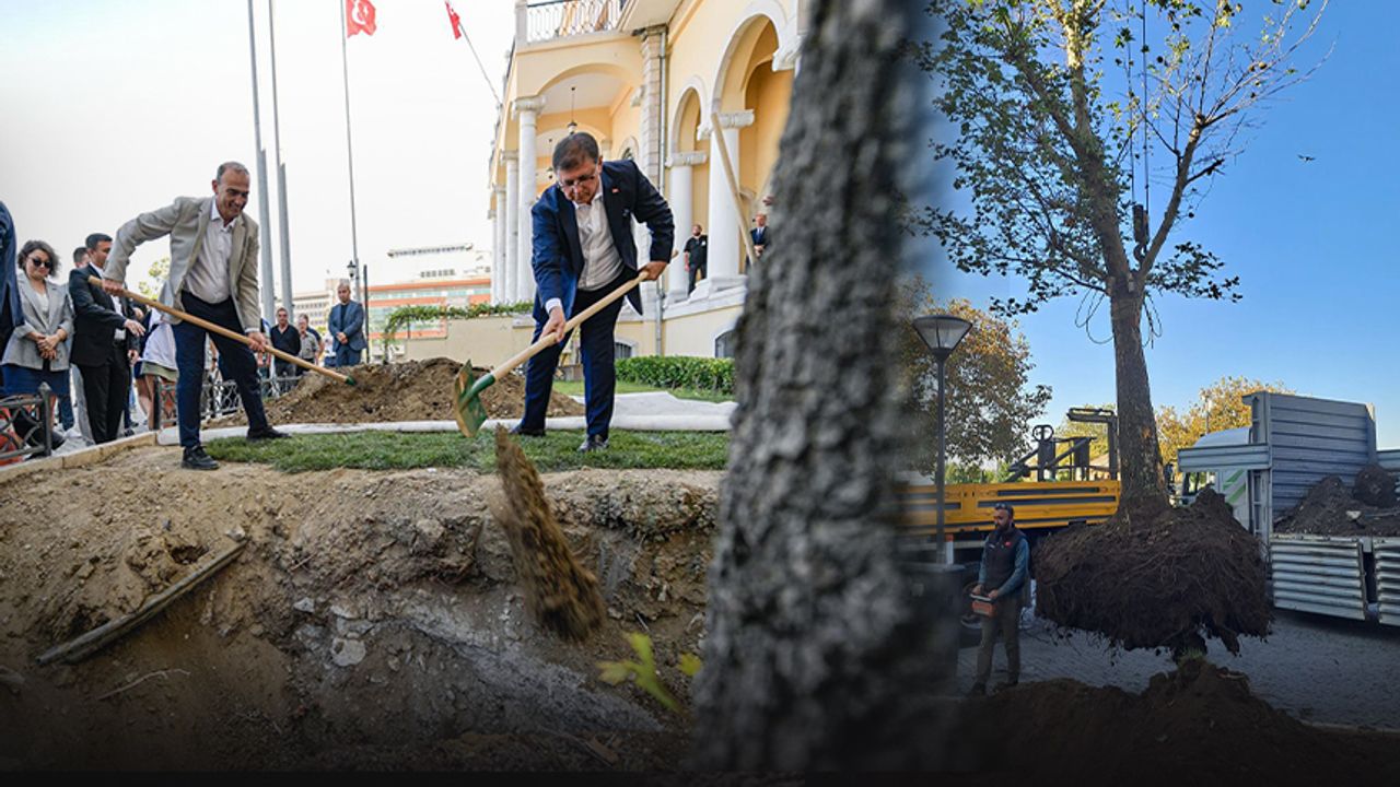İzmir Büyükşehir Belediye Başkanı Cemil Tugay, çınar ağacının yerine kökleriyle birlikte 7 metre boyunda ve 120 santimetre gövde kalınlığındaki doğu çınarını dikti.
