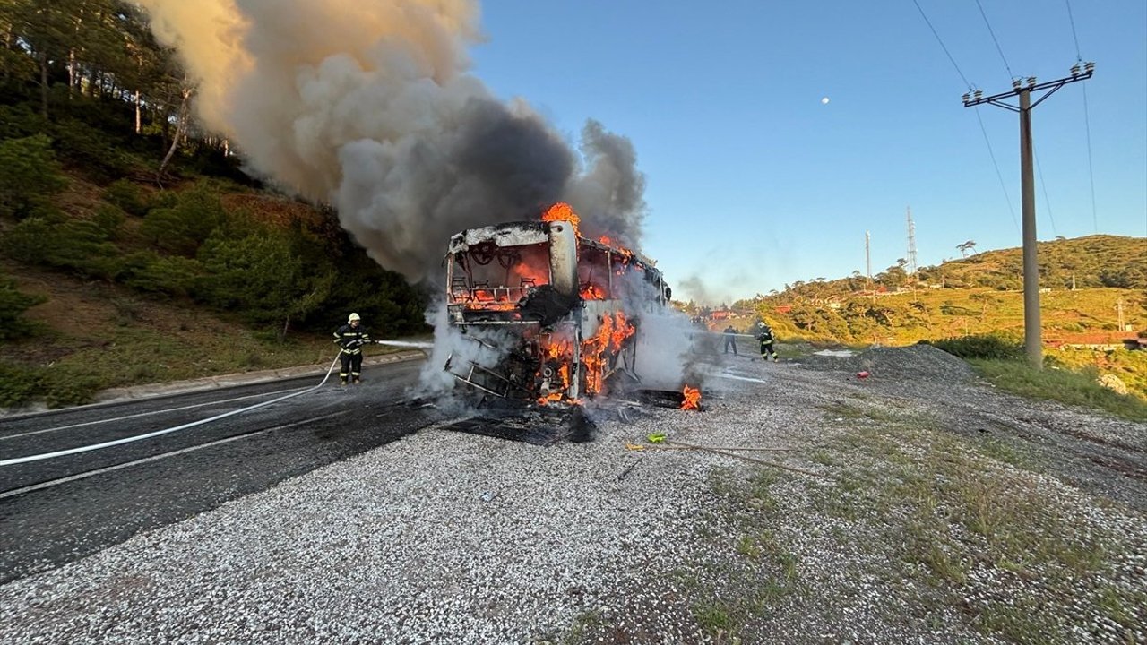 Alınan bilgiye göre, Marmaris-Datça karayolunun Mezargediği mevkisinde Hayrettin Akboğa'nın (56) kullandığı 07 FNA 87 plakalı tur otobüsünün arka kısmından henüz bilinmeyen nedenle duman çıkmaya başladı.