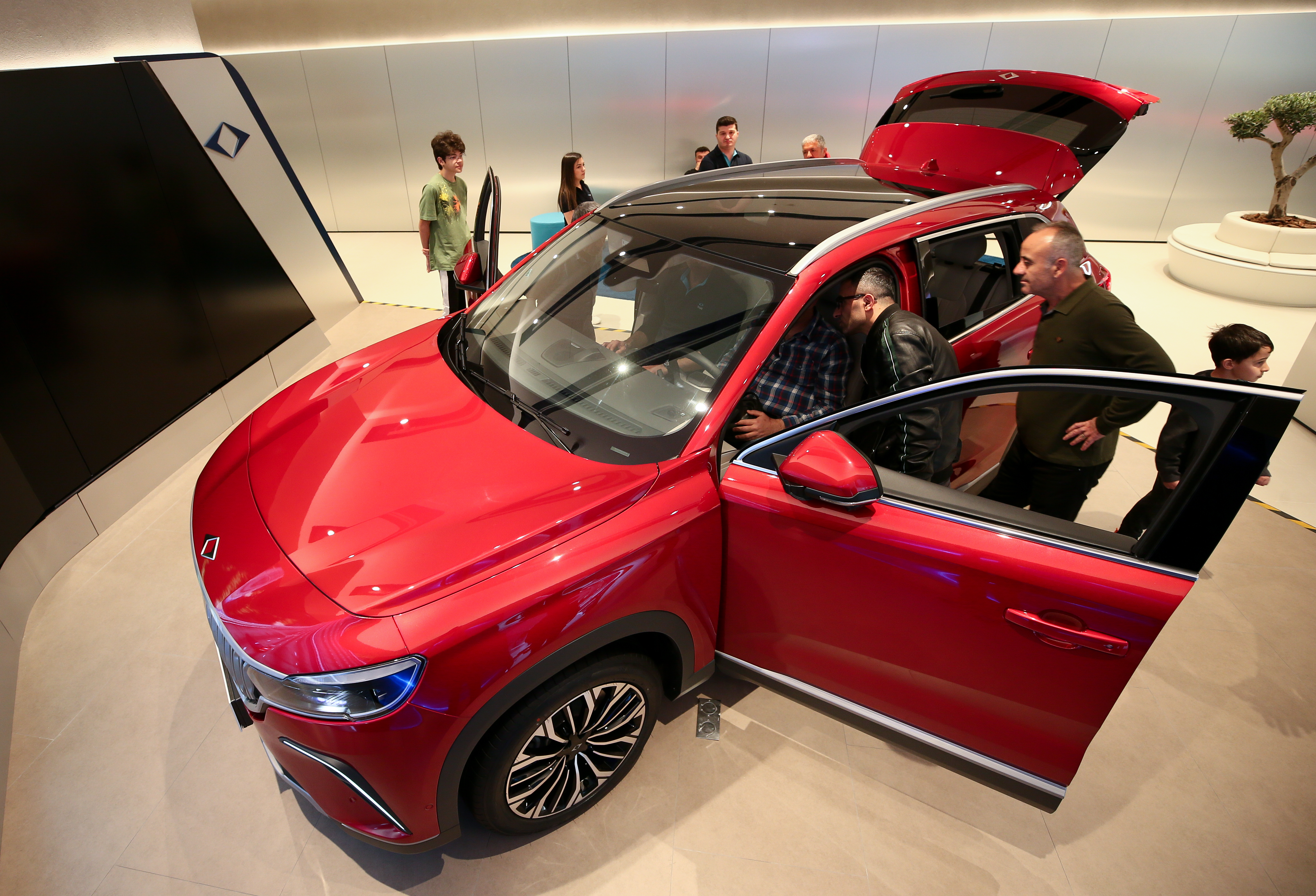 Balçova ilçesindeki Agora AVM'de açılan merkezde, T10X'in "Gemlik mavisi" ve "Anadolu kırmızısı" renklerindeki modelleri sergileniyor.
