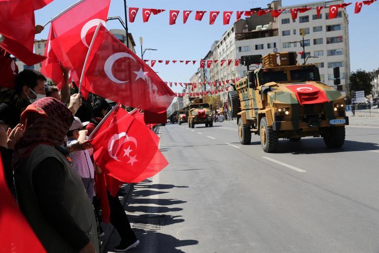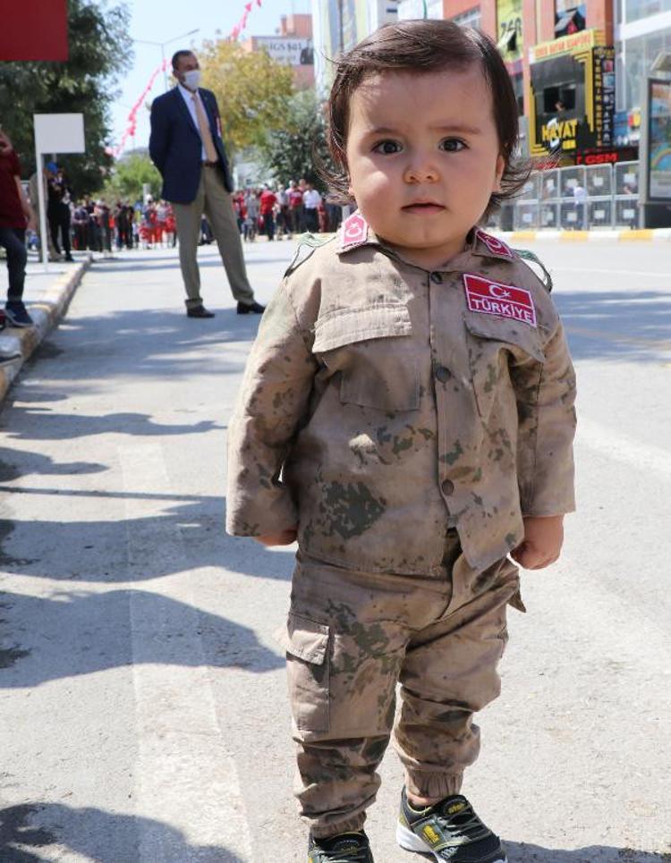 30 Ağustos Zafer Bayramı'nın 99'uncu yıl dönümü Van, Bitlis ve Hakkari'de törenlerle kutlandı. Cumhuriyet Caddesi'nde toplanan halkın bayramını kutlayan Vali Bilmez, kutlamaları izleyen asker üniformalı 14 aylık Çınar Varlık'ı kucağına alarak sevdi.
