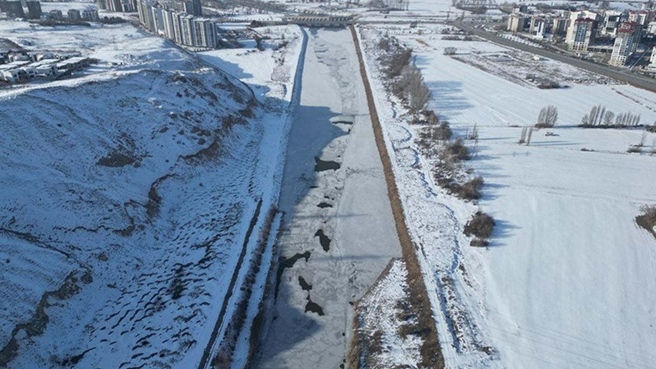 Tarihi Eğri Köprü civarındaki bölümünde nehrin yüzeyi tamamen donarken, Kesik Köprü civarında ise akışın olduğu ancak buz kütlelerinin oluştuğu görüldü. Buz tutan nehir dronla görüntülendi.