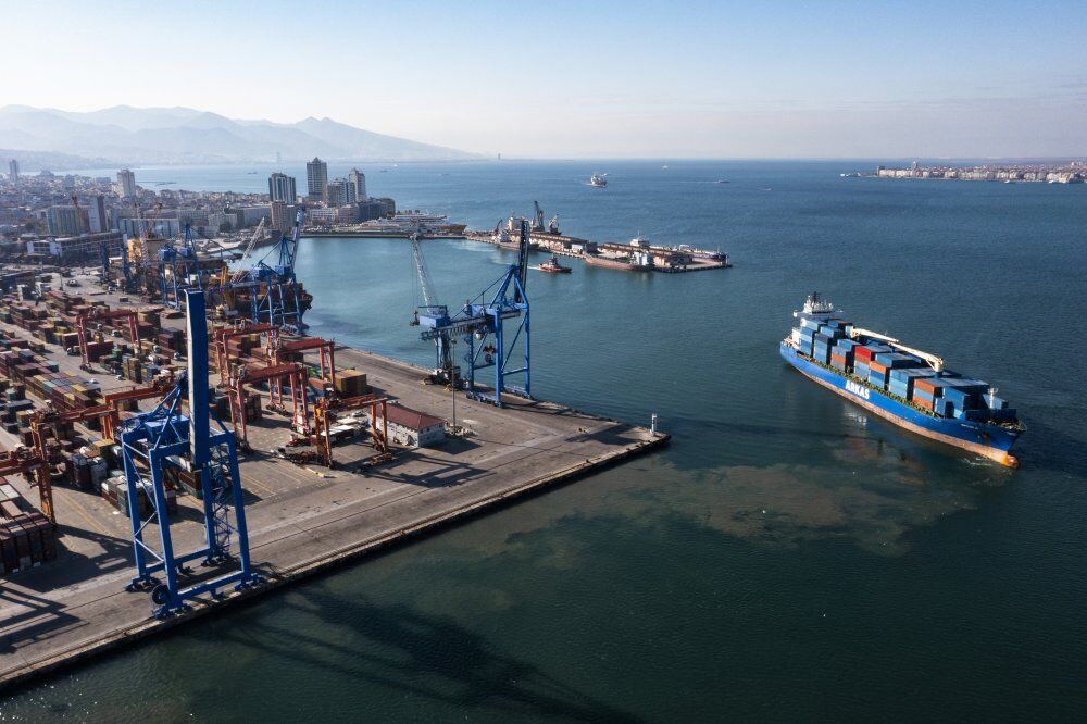 Ege Bölgesi'nin en büyük limanları arasında yer alan İzmir Limanı, konteyner başta olmak üzere genel kargo, dökme katı, dökme sıvı, RO-RO ve yolcu gemilerine hizmet veriyor. (AA)