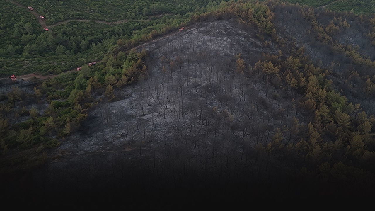 Bugün sabahın ilk ışıklarıyla birlikte hava araçları, alevlere yeniden su atmaya başladı. Ekiplerin söndürme çalışmaları sürerken, yangında oluşan zarar gün ağarınca ortaya çıktı. Bölge dron ile görüntülendi.