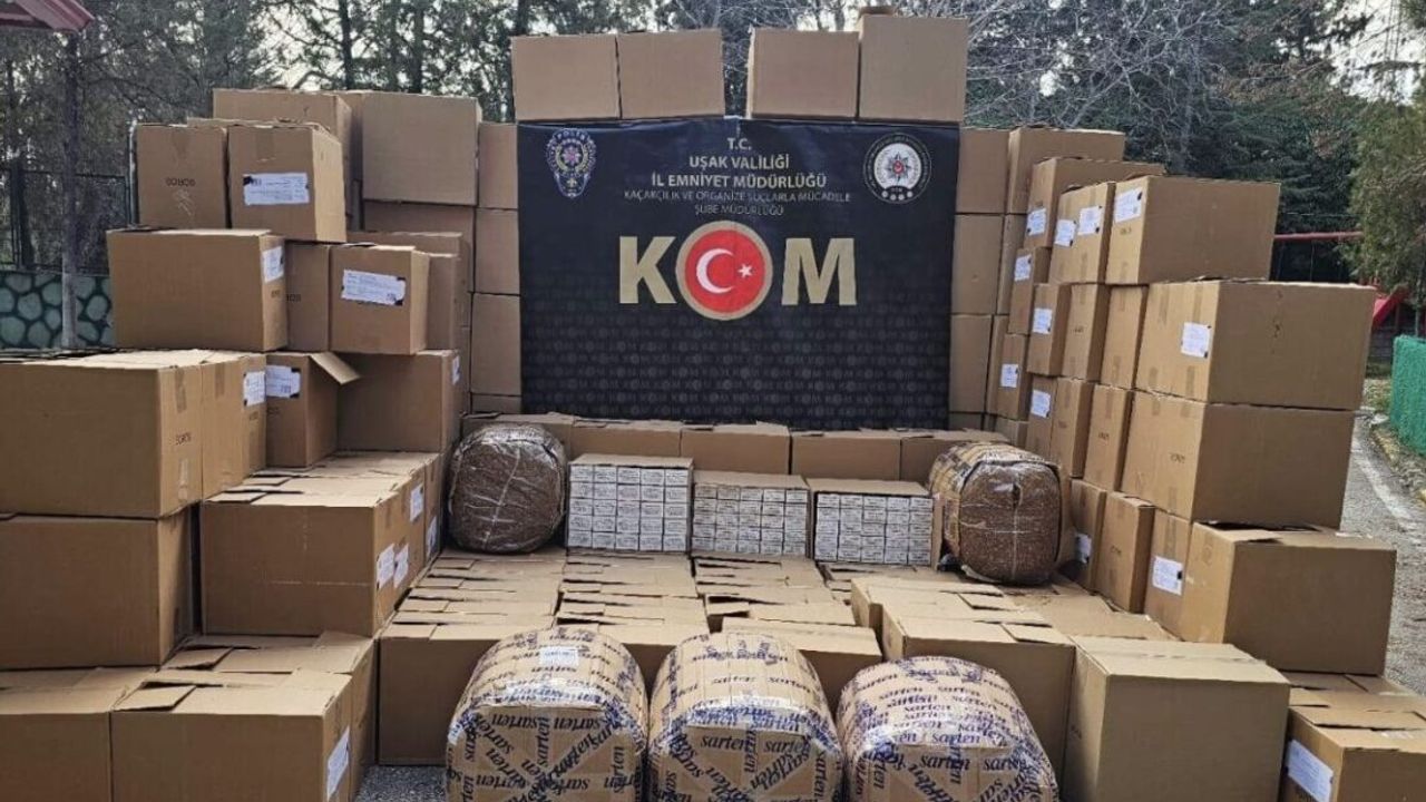 Yapılan aramada 17 bin bandrolsüz makaron, 15 kilo kıyılmış kaçak tütün ve 4 sigara sarma makinesi geçirildi.