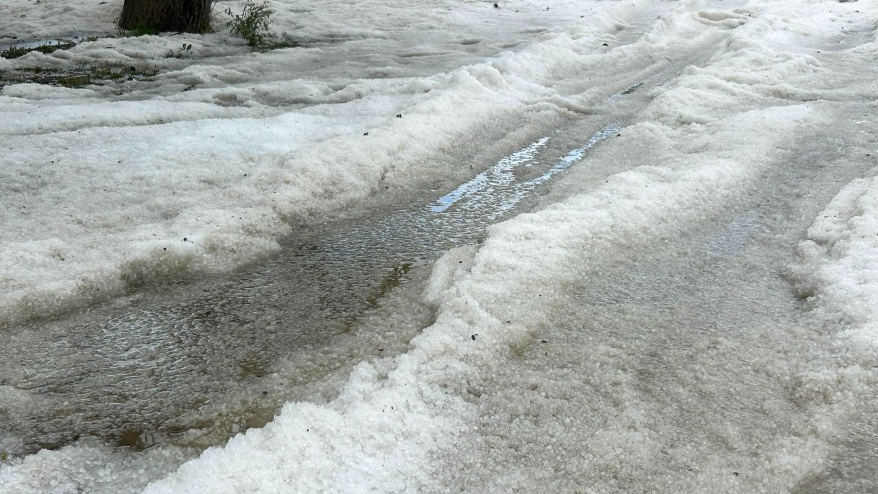 Sağanağın ardından etkili olan doluyla birlikte tarlalar ve sokaklar beyaza büründü.