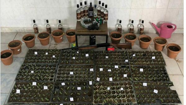 İl Jandarma Komutanlığı Jandarma Suç Araştırma Timi (JASAT) ekipleri, yapılan çalışmayla Buldan ilçesinin Dımbazlar Mahallesi'nde iki kişinin saksılarda hintkeneviri yetiştirip, sattığını belirledi. Dün şüpheliler Adem Taş (45) ve Ahmet Yeşilkaya'nın (43) evlerine JASAT, İl Jandarma Komutanlığı Kaçakçılık ve Organize Suçlarla Mücadele Şubesi ve Buldan İlçe Jandarma Komutanlığı ekipleri ile operasyon düzenledi. İki kişinin evlerinde yapılan aramalarda, çatı, balkon ve ahırda saksılara dikilmiş toplam 600 kök Hint keneviri, kaçak üretildiği belirlenen 20 litre rakı, ruhsatsız 1 av tüfeği ve 1 tabanca, 50 mermi ele geçirdi. Şüpheliler gözaltına alındı.