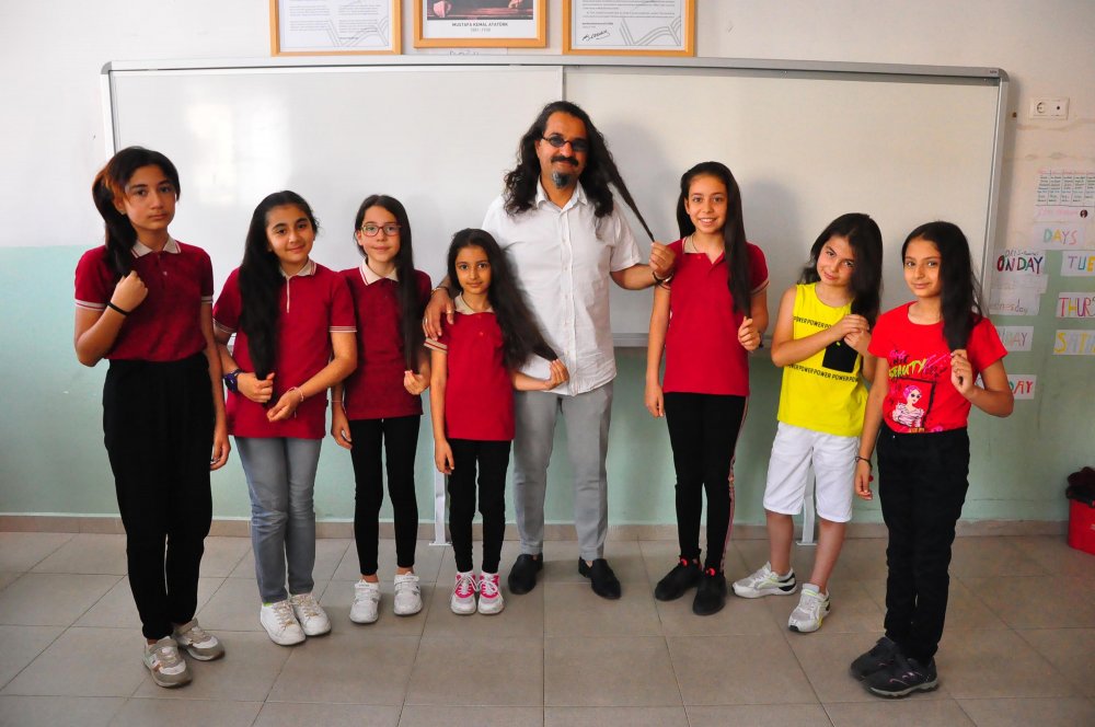 Saçını bağışlayan 4'üncü sınıf öğrencisi Meryem Aslı Taşdemir (10), "Murat öğretmenimizi ilk gördüğümüzde saçının neden uzun olduğunu merak ettik. Sorduğumuzda saçlarını kanser hastalarına bağışladığını söyledi. Kanserin ne olduğunu sorduk. 'Kanserli çocuklar hastalıklarla savaşıyor ve saçları yok' demişti. Üzüldüm. Daha sonra öğretmenimiz 'Eğer istiyorsanız siz de uzatın, sene sonunda kesersiniz' dedi. Biz de heyecanla kabul ettik. Annem de 'Kızım eğer istiyorsan bir çocuğun mutlu olmasını içinden gelmesi lazım. Sana zorla yaptıramam' dedi. Bugün projenin sonuna geldim, çok mutluyum. Onlara büyük bir umut olduk, olmaya da devam edeceğiz" diye konuştu.