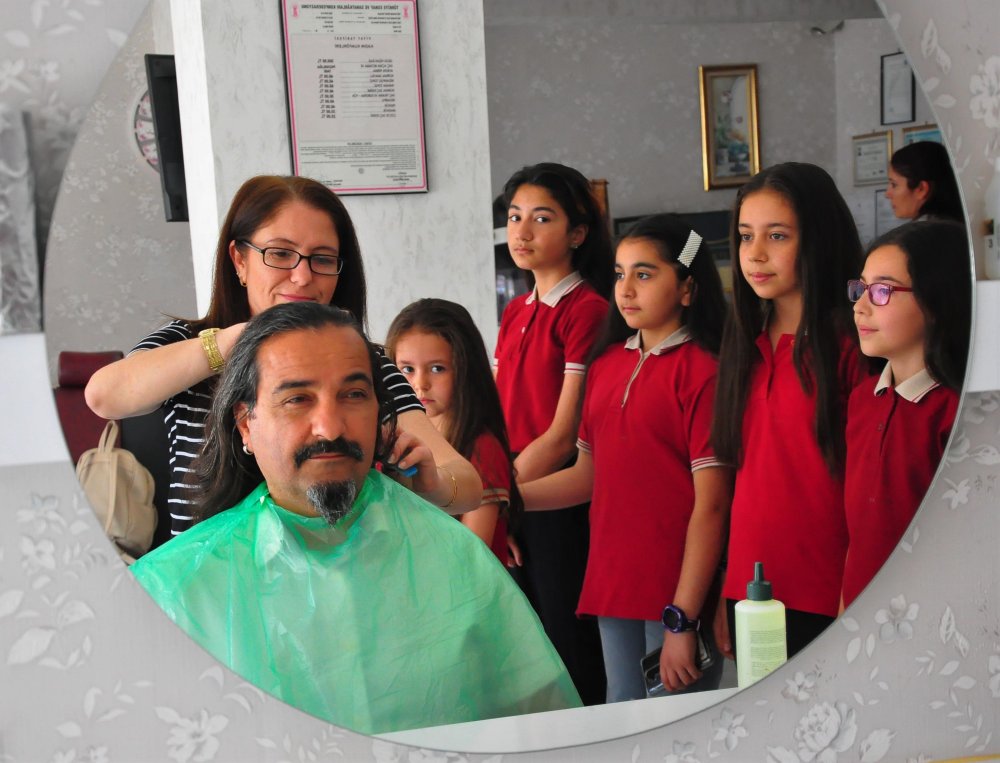 Saçını bağışlayan 4'üncü sınıf öğrencilerinden Buğlem Çelik (10) ise "Öğretmenimiz sayesinde bu proje ile Kanser Savaşçıları Derneği destek olduk. Saçımı bağışladığım için çok mutluyum" dedi. (DHA)