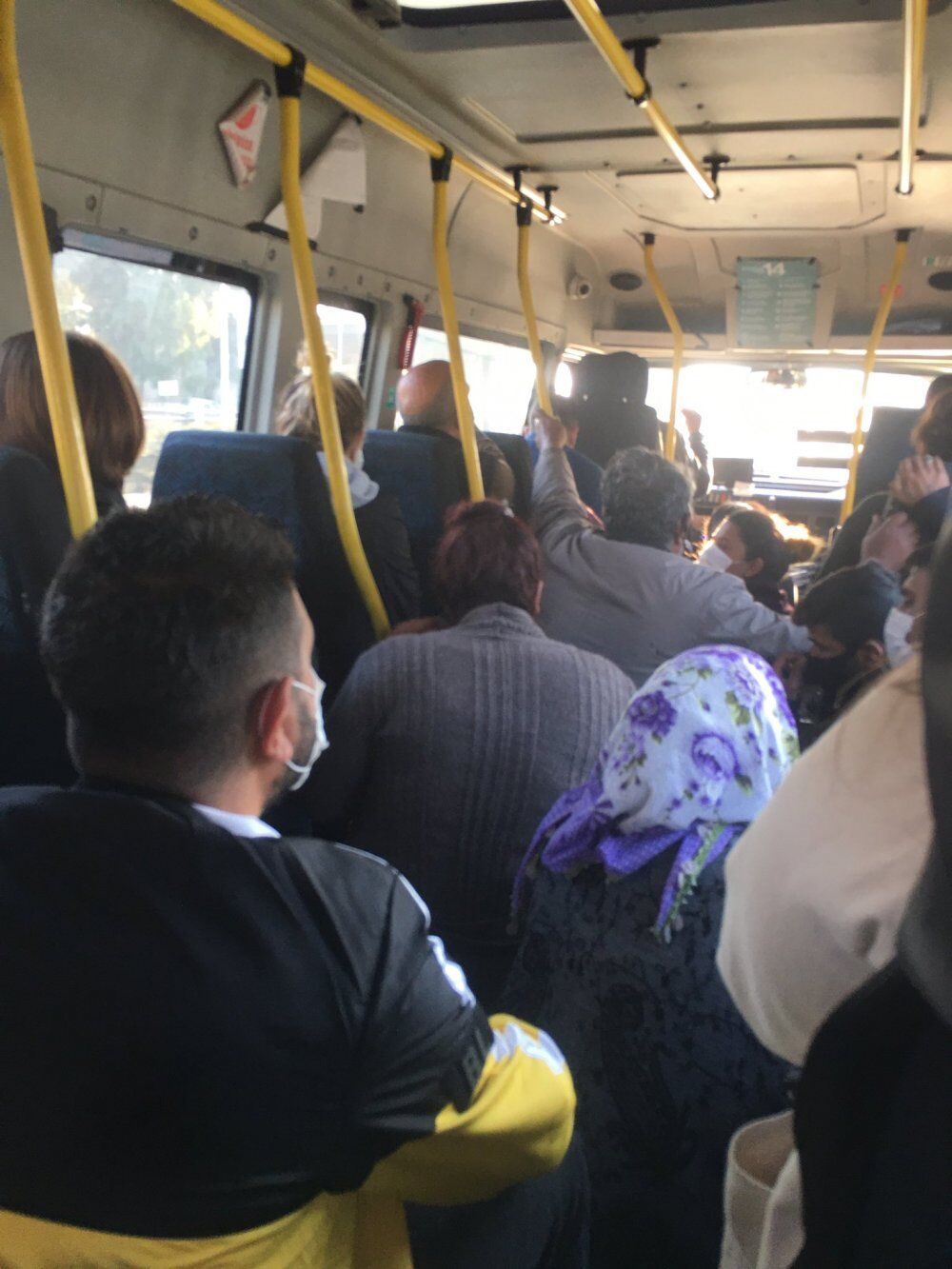 Toplu ulaşımda önemli bir yere sahip dolmuşlarda ayakta yolcu almak yasaklanırken bu kurala uymayan şoförler saç baş yoldurmaya devam ediyor. Bu fotoğraf bugün İzmirli bir vatandaş tarafından çekildi. Minibüsün tıklım tıklım görüntüsü “koronavirüsün” nasıl yayıldığı gözler önüne seriyor.