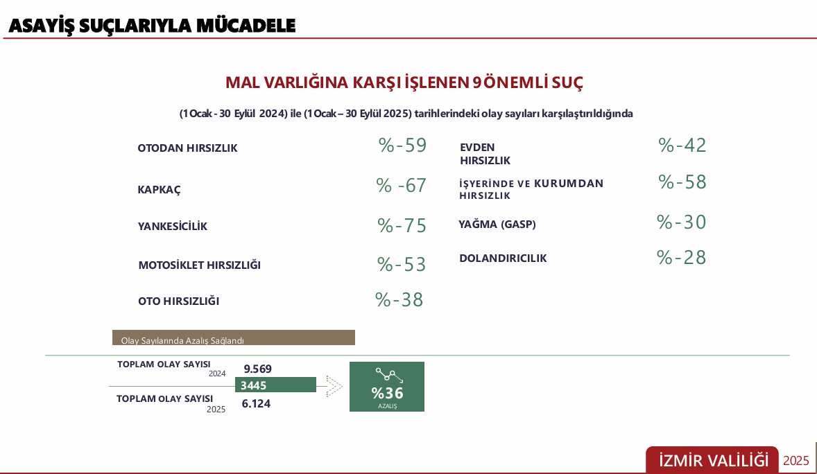 “MAL VARLIĞINA KARŞI SUÇLARDA YÜZDE 36’LIK AZALMA”