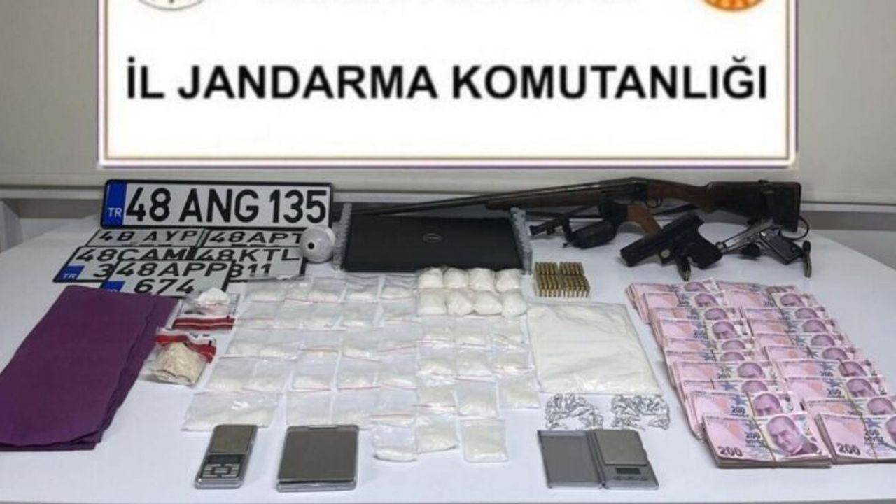 Villada yapılan aramada ise 3 ruhsatsız tabanca, 500 gram kokain, 850 gram metamfetamin, ruhsatsız av tüfeği ve suçtan elde edildiği değerlendirilen 400 bin lira ele geçirildi.