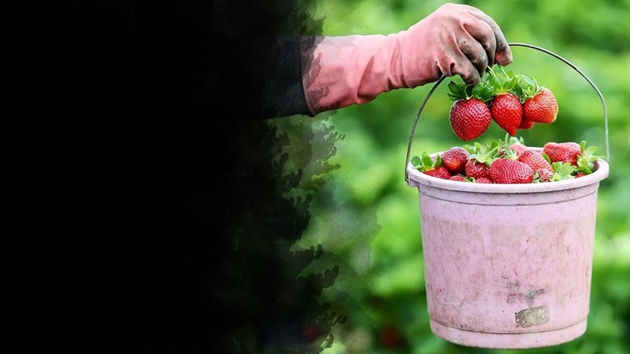 Çilekler, zarar görmemesi için tek tek ve özenle toplanıyor.