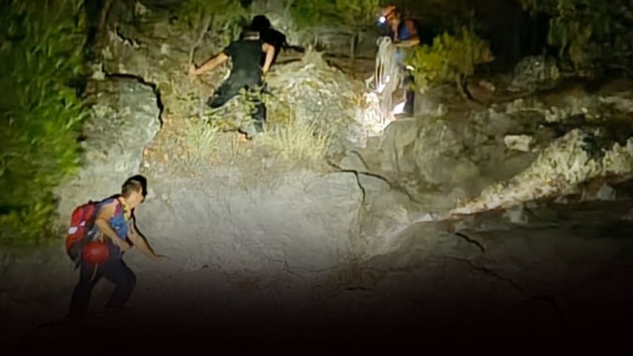 Nazarköy Mahallesi'ndeki dağlık alanda yürüyüşe çıkan H.D. (22), H.E.Ç. (22) ve E.B. (21) bir süre sonra sarp kayalıkların bulunduğu alanda mahsur kaldı.