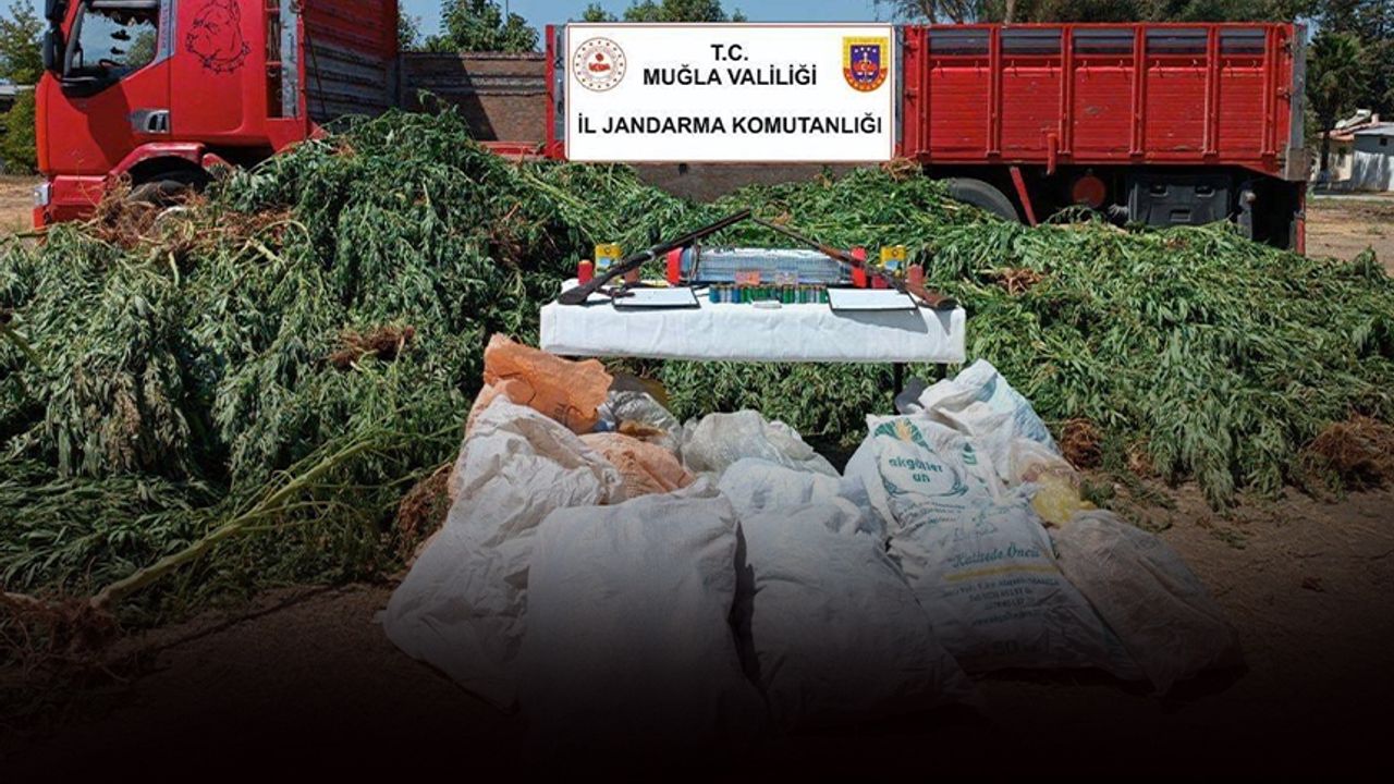 6 ay süren teknik ve fiziki takibin ardından gerçekleştirilen operasyonda 5 bin 126 kök Hint keneviri, 25 kilogram kubar esrar, 2 ruhsatsız av tüfeği, 2 tarihi eser niteliği bulunan obje, 1 adet G3 mermisi, 2 cep telefonu, 122 av fişeği kapsülü ve 1,5 kilogram barut ele geçirildi.
